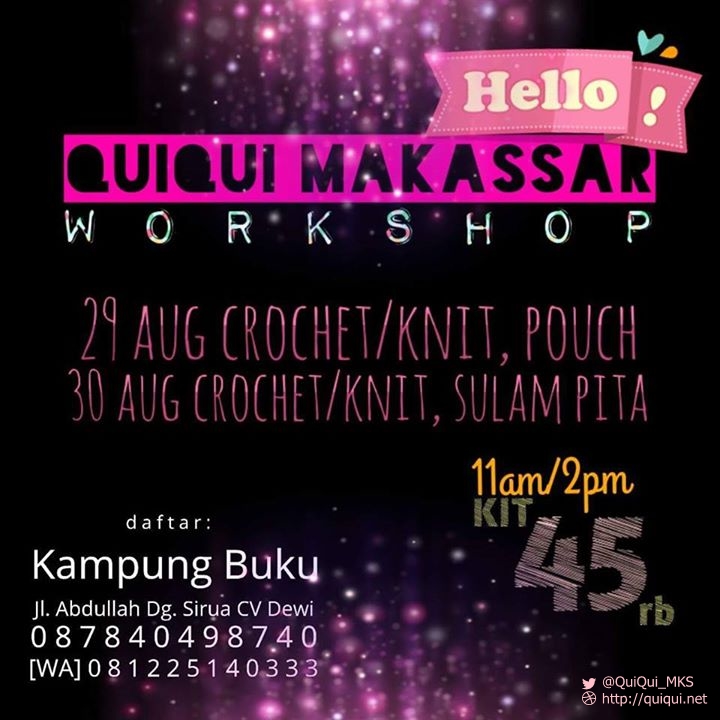 Hai teman! Komunitas Quiqui Makassar kembali mengadakan ‘Kelas Tangan Rajin’. Catat informasi lengkapnya: Hari/Tanggal : Sabtu-Minggu, 5-6 September 2015 JLanjut baca …