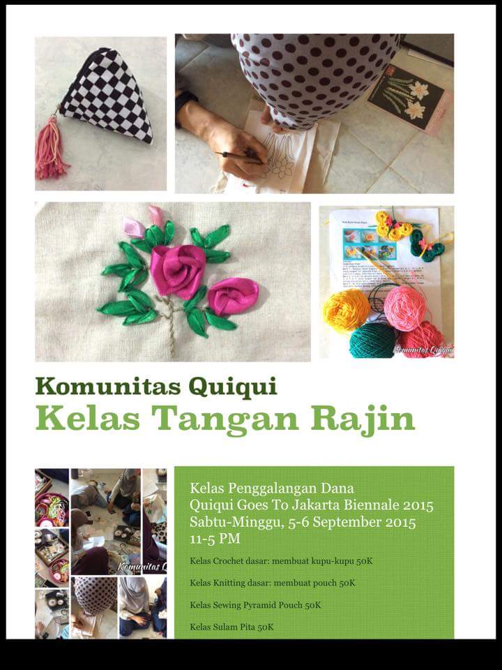 Pasar Tangan Rajin ini merupakan kegiatan penggalangan dana Komunitas Quiqui menuju Jakarta Biennale 2015. Acara ini menggandeng beberapa crafter berbakatLanjut baca …
